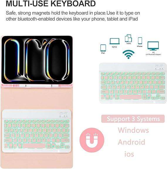 Posting for 10+ yearsKeyboard Case for iPad Pro 11-inch (M4) 2024, iPad Pro 11-inch (5th Generation), 7-Color Backlit