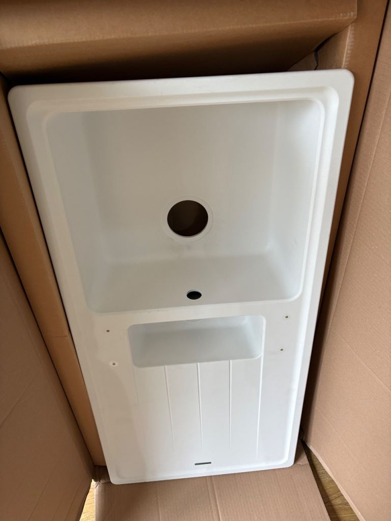New kitchen sink, Schock make, see photos for damage. Very small amount of damage. Hoping it can be fixed by right person. Make me an offer