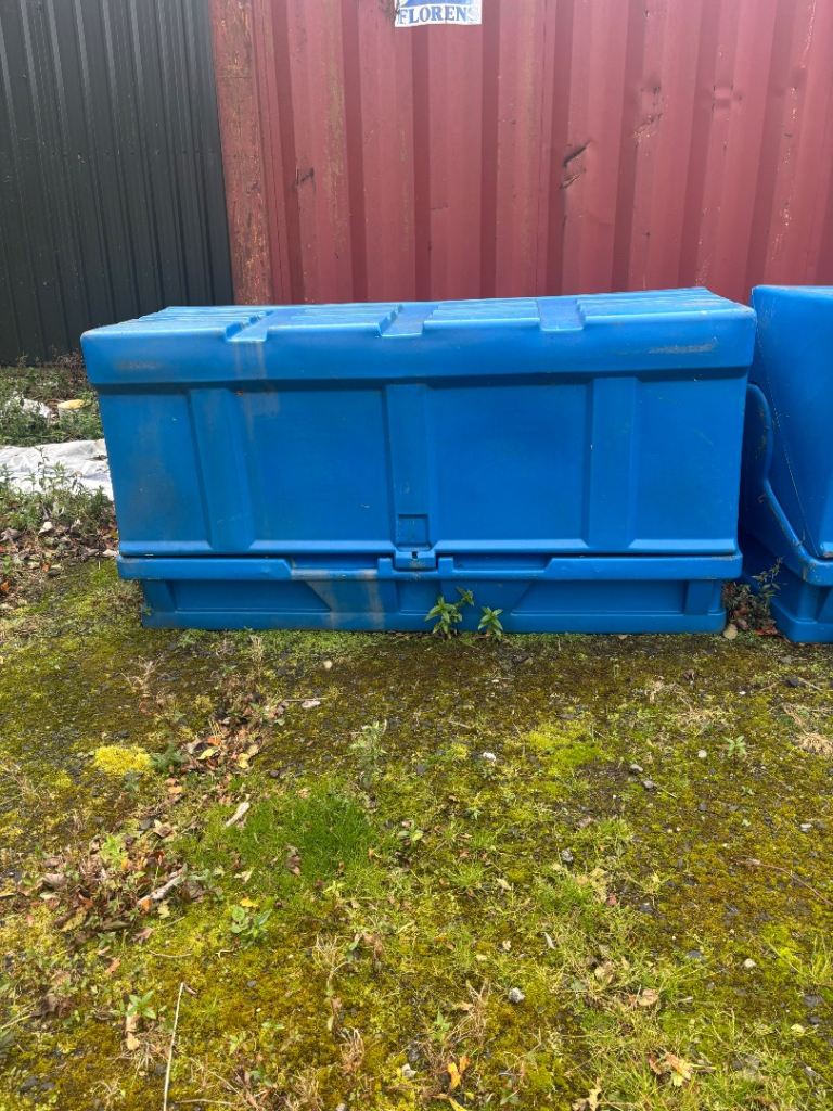 Large blue plastic forecourt bins lockers bunkers with lockable lids