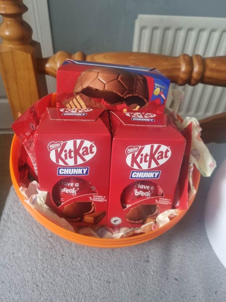 Kitkat easter hamper. Contains what you can see in pictures inside large egg. Will be wrapped with bow on too.