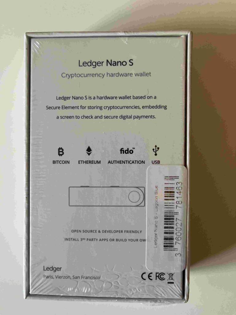 Hardware wallet for storing cryptocurrencies with secure element and screen. Brand new, never opened, still in original plastic packaging. Purchased directly from Ledger store.