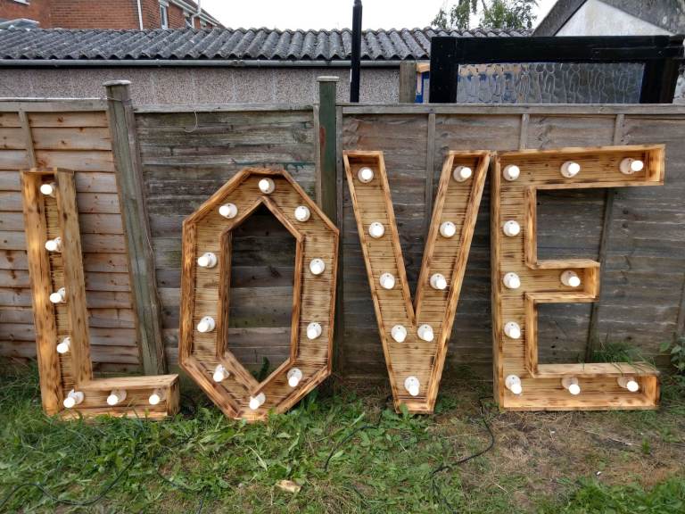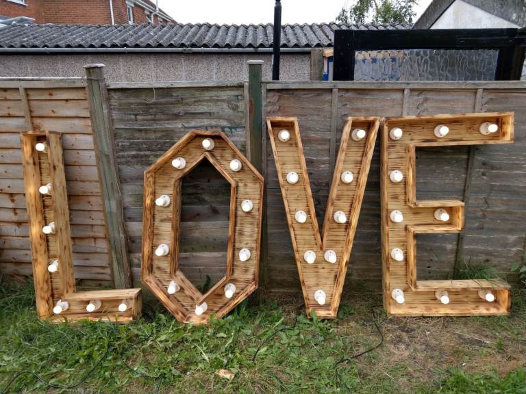 Posting for 9+ monthsLight up LOVE letters Bespoke, hand made, 4ft high, wedding accessory/decorations