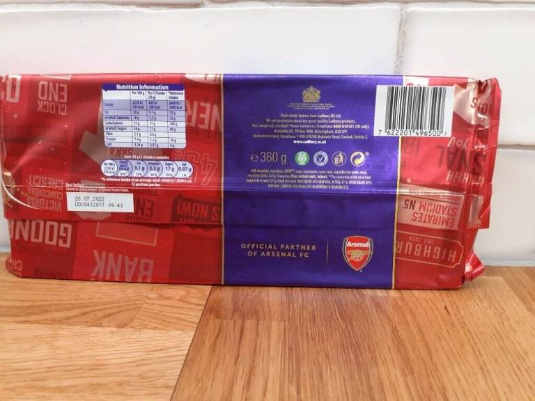 Limited Edition Cadbury/Arsenal collaboration. This is a big milk chocolate bar (360g).