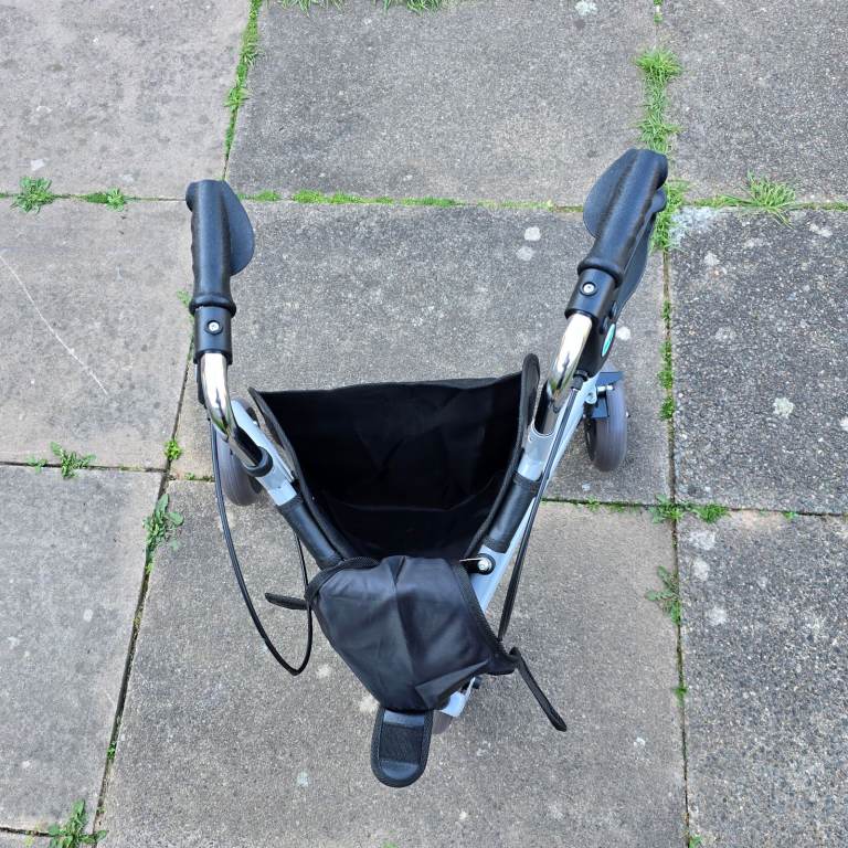 - *A central storage bag* made of black fabric or synthetic material for carrying personal items.
