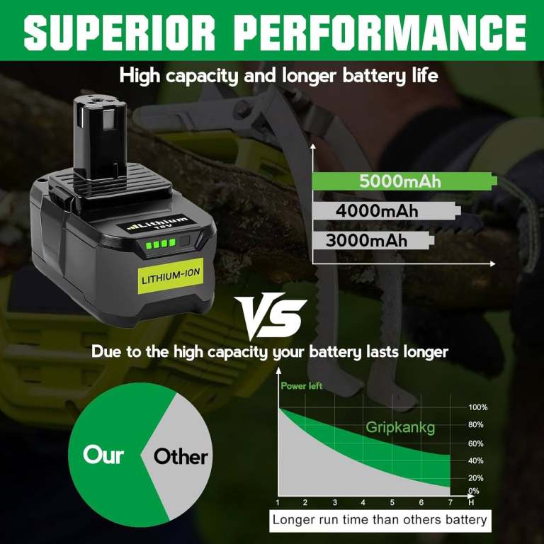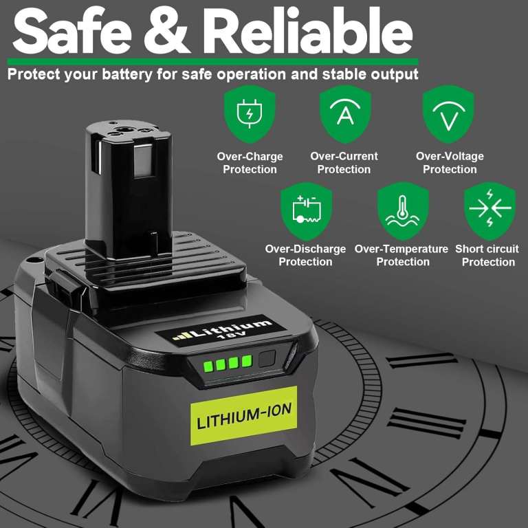 • Compatible with Ryobi One+ tools (P102/P103/P104/P105/P106/P107)