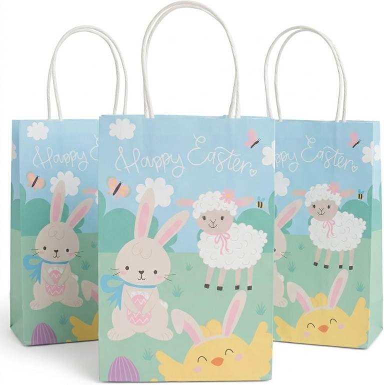 Pack of 6 AKH® Happy Easter Paper Goodie Treat Gift Bags with Handles.POST OR COLLECT!
