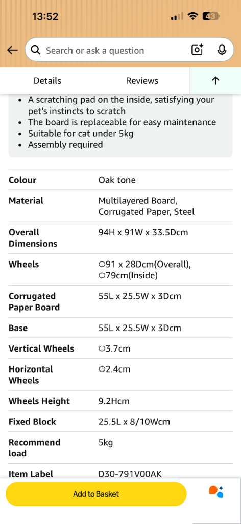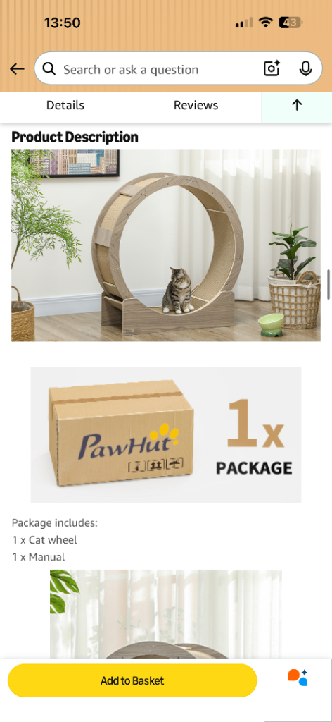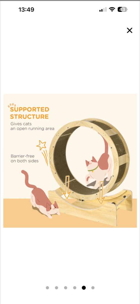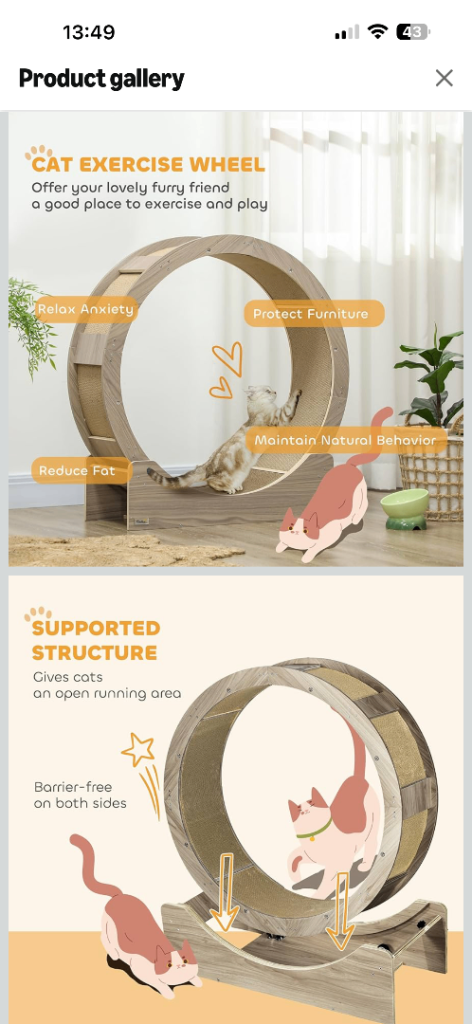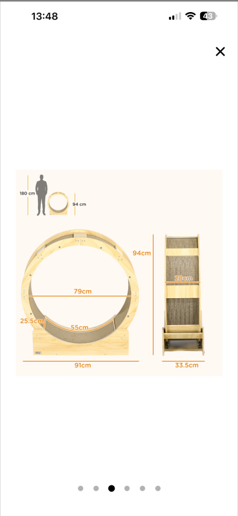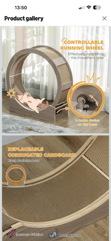 Natural wood grain appearance: A simple, yet elegant design, blending perfectly with existing decoration – this cat treadmill wheel won't look out of place when set up.