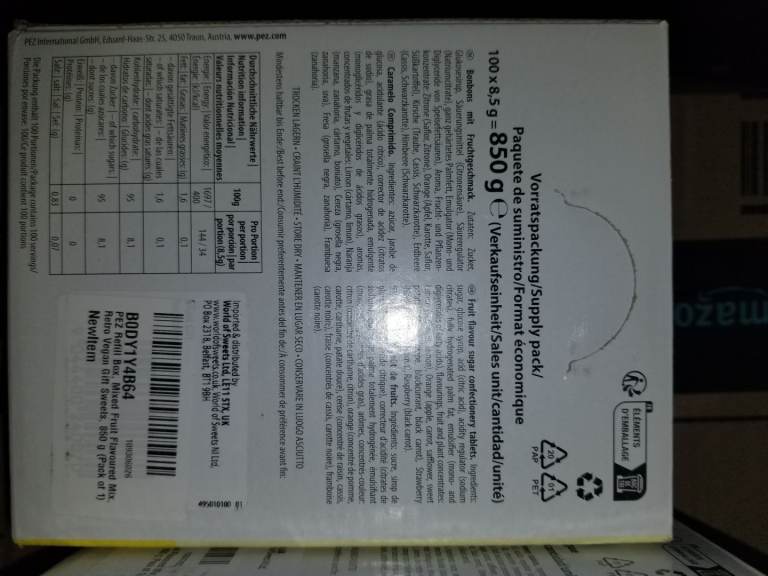 Posting for 7+ monthsPez Candy Sweets Fruit Refill Box - 100 Count (850g)