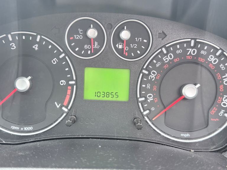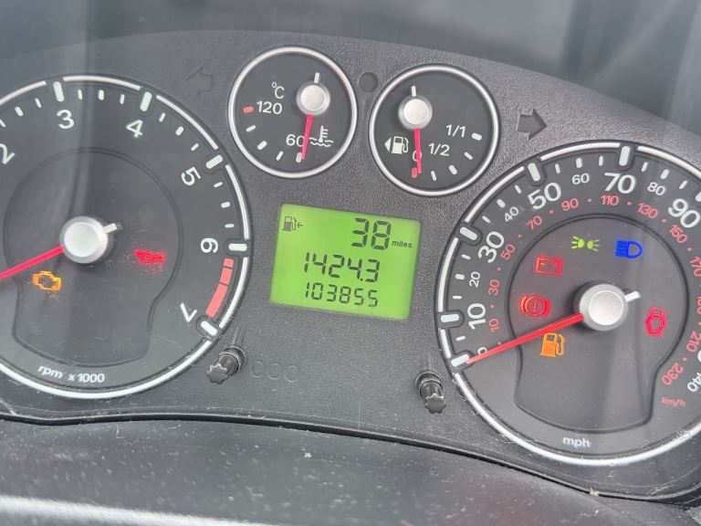 Here's my red Ford Fiesta, manual gearbox, mileage showing 103855 on the clock.