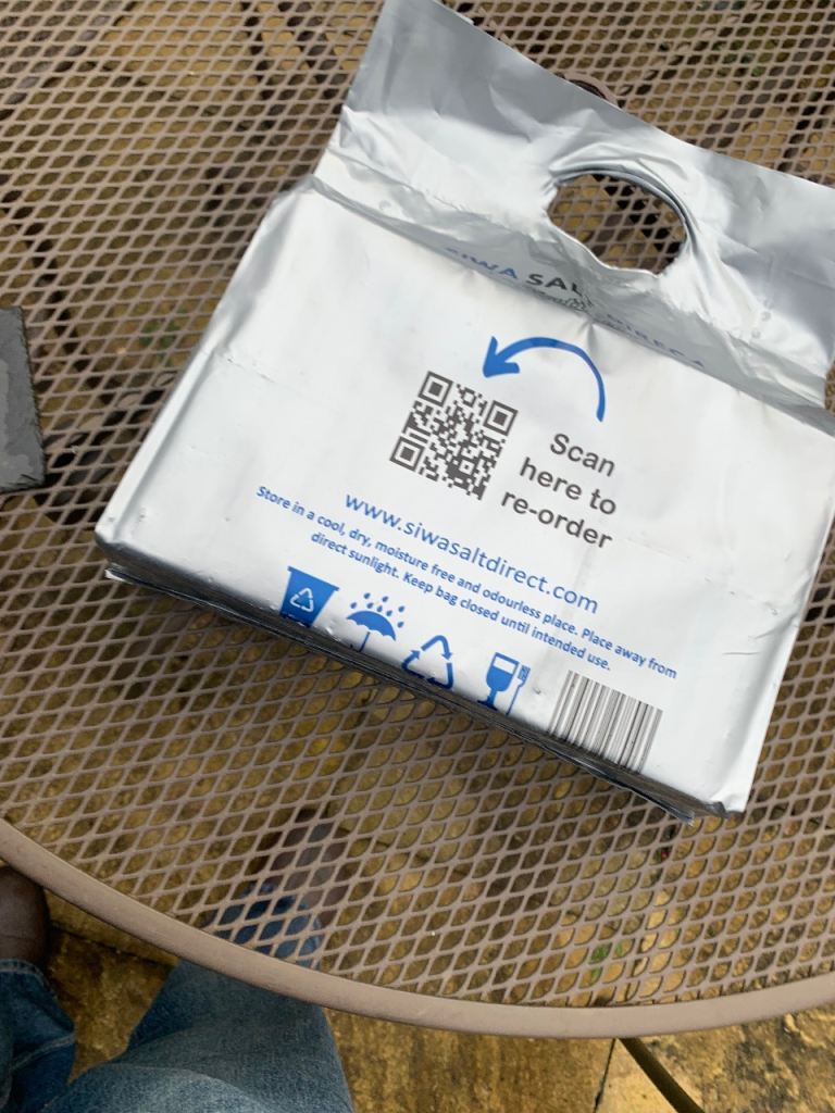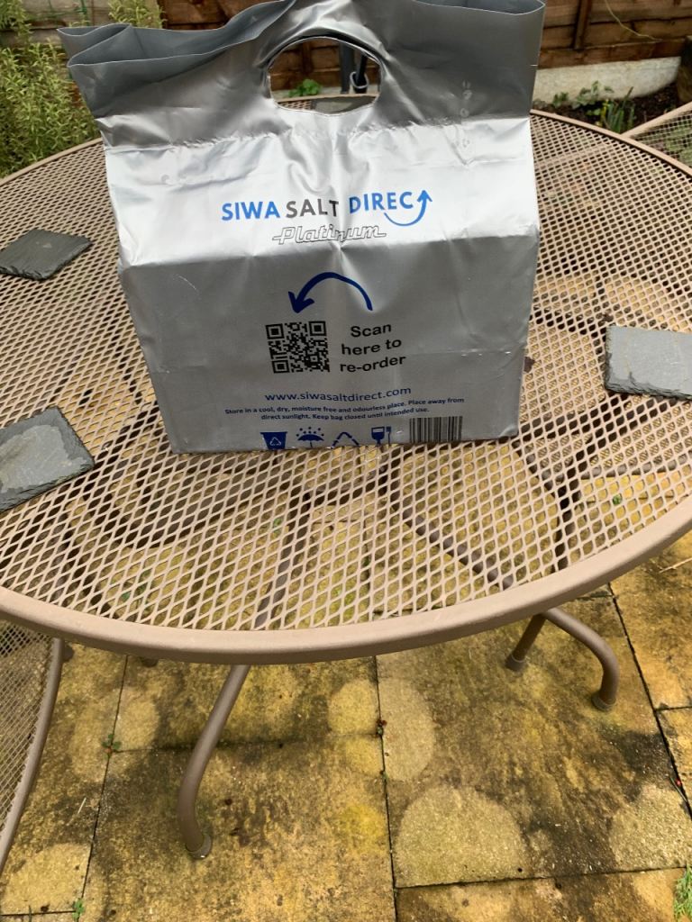 3 sealed bags (6 blocks) of water Softners salt blocks. Have been stored indoors.