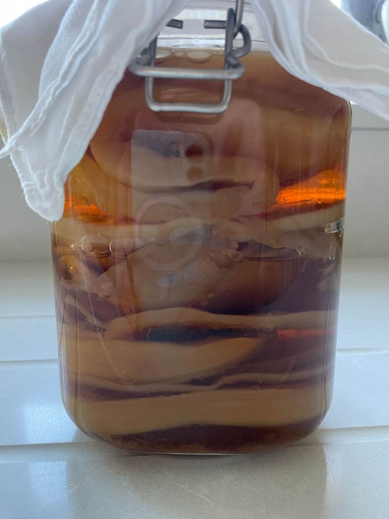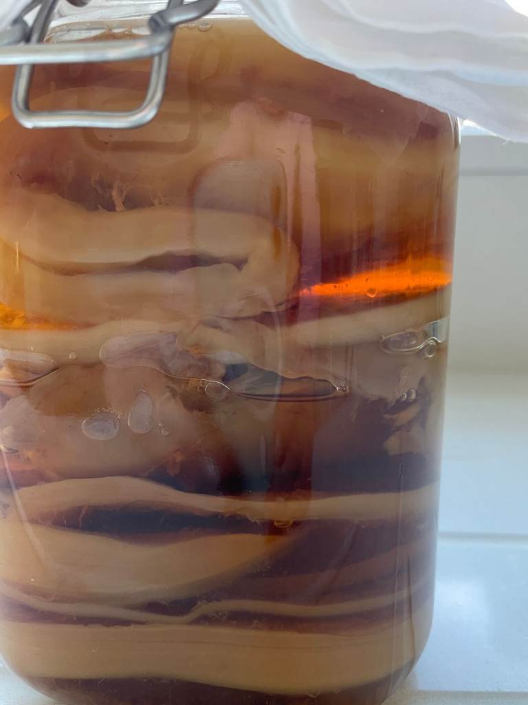 Healthy scoby with some starter liquid for making kombucha. Collection only . Happy, healthy brewing