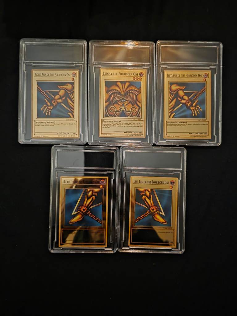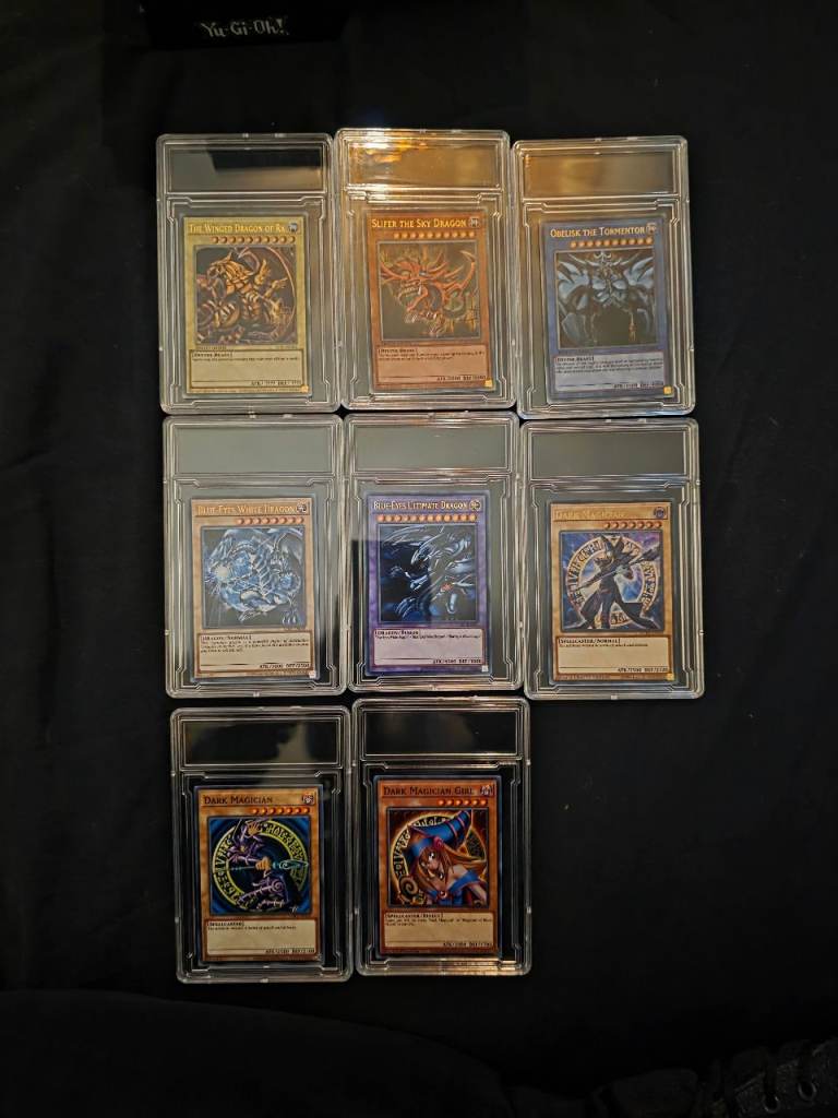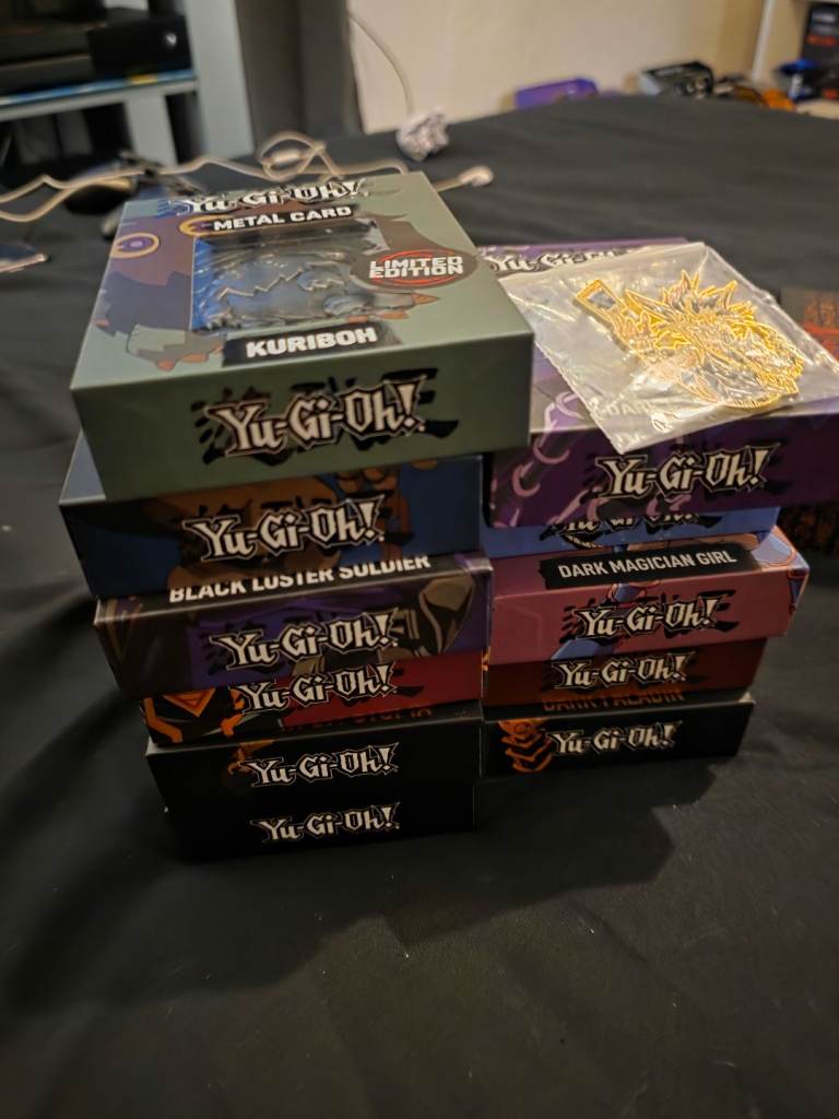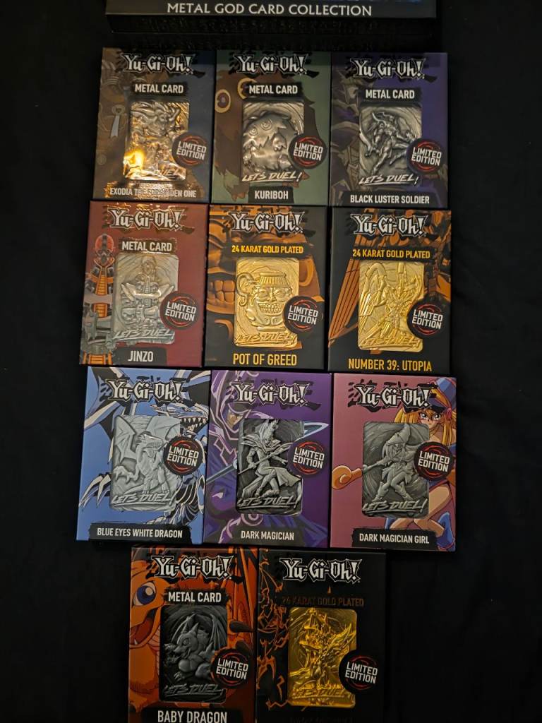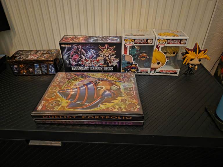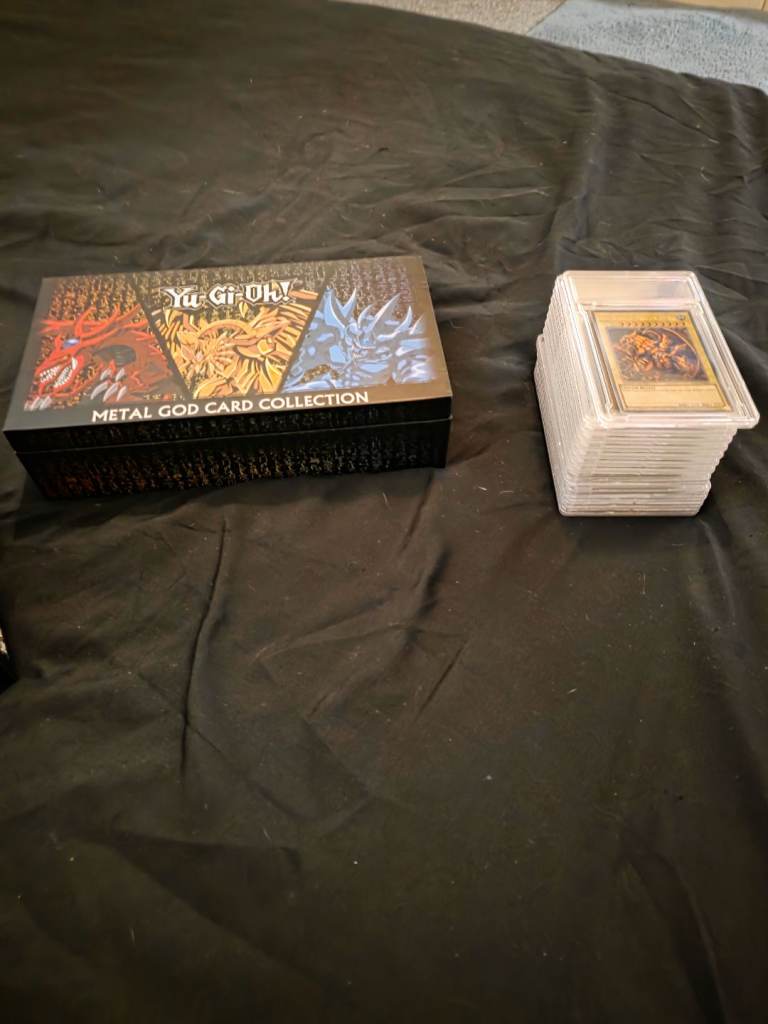 Selling whole collection of yugioh stuff all brand new sealed still apart from cards that have been placed into folders when opened comes woth all the cards a legendary dragon decks sealed still 2 folders and tin full of cards a sealed pack still in. Top loader metal god collection metal ignot set also 11 other sealed yugioh metal ignot cards sealed still metal pin badge large 11 cards in slabs of dark magician blue eyes white dragons dark magician girl etc all original cards metal gold exodia set all 5 metal cards 3x funky pops 2 sealed still asking 150 for the lot selling all my collectibles now onto other hobbies cash at the door only