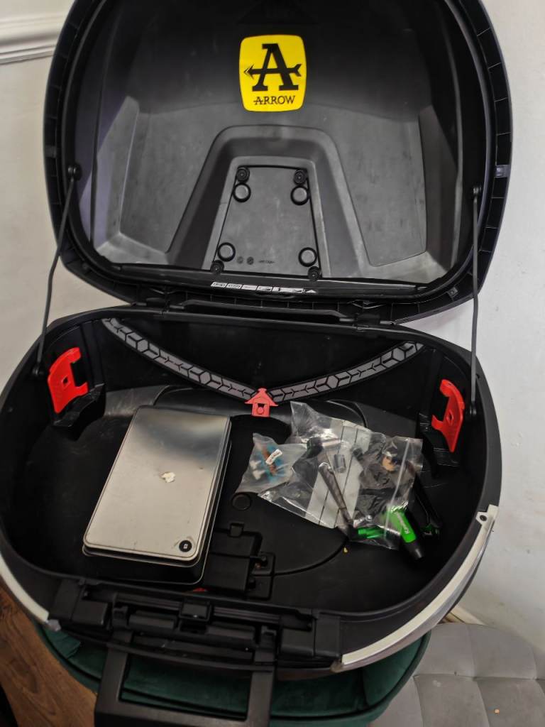 "Pre-owned SHAD SH58X top case with SHAD Top Master fitting kit, compatible with Kawasaki Z900 (years 2017 to present). This set is in excellent condition, fully functional, with all mounting hardware included. The SH58X is expandable (46 to 58 liters), easily fitting two helmets. Ideal for touring. Ready to install on your Kawasaki Z900."