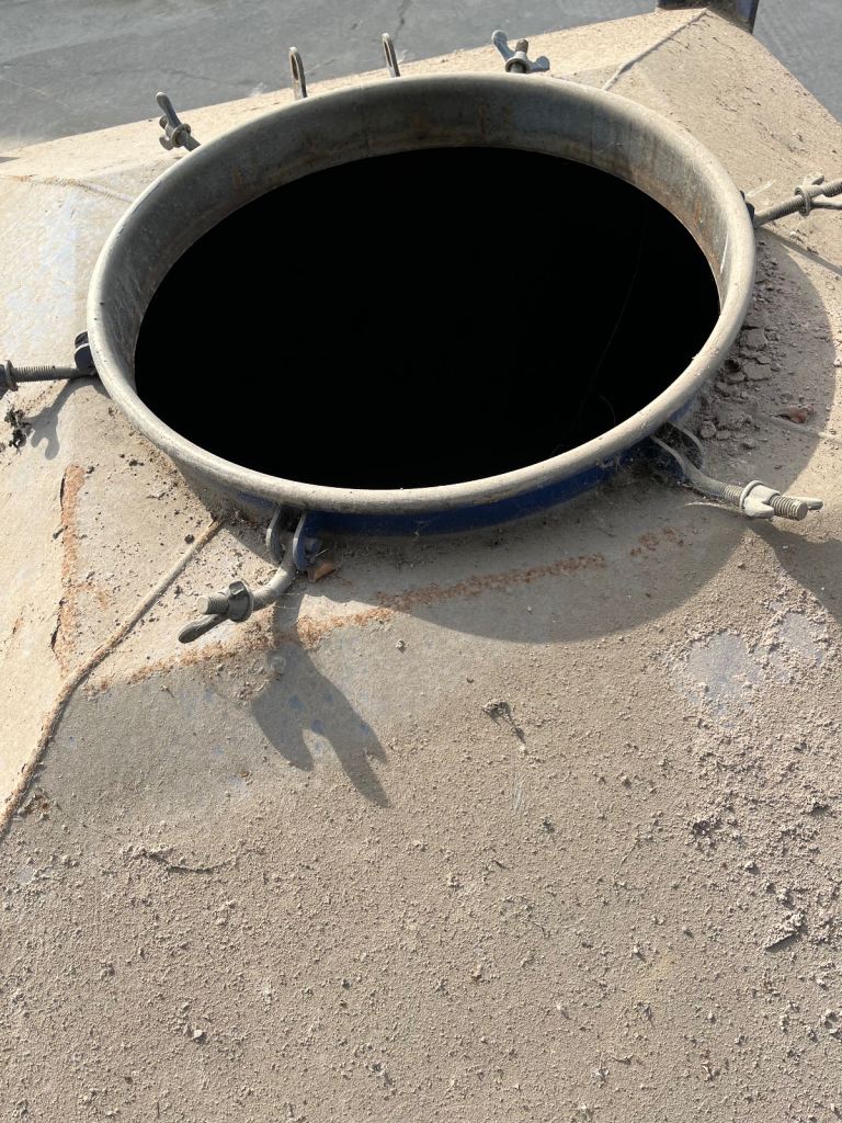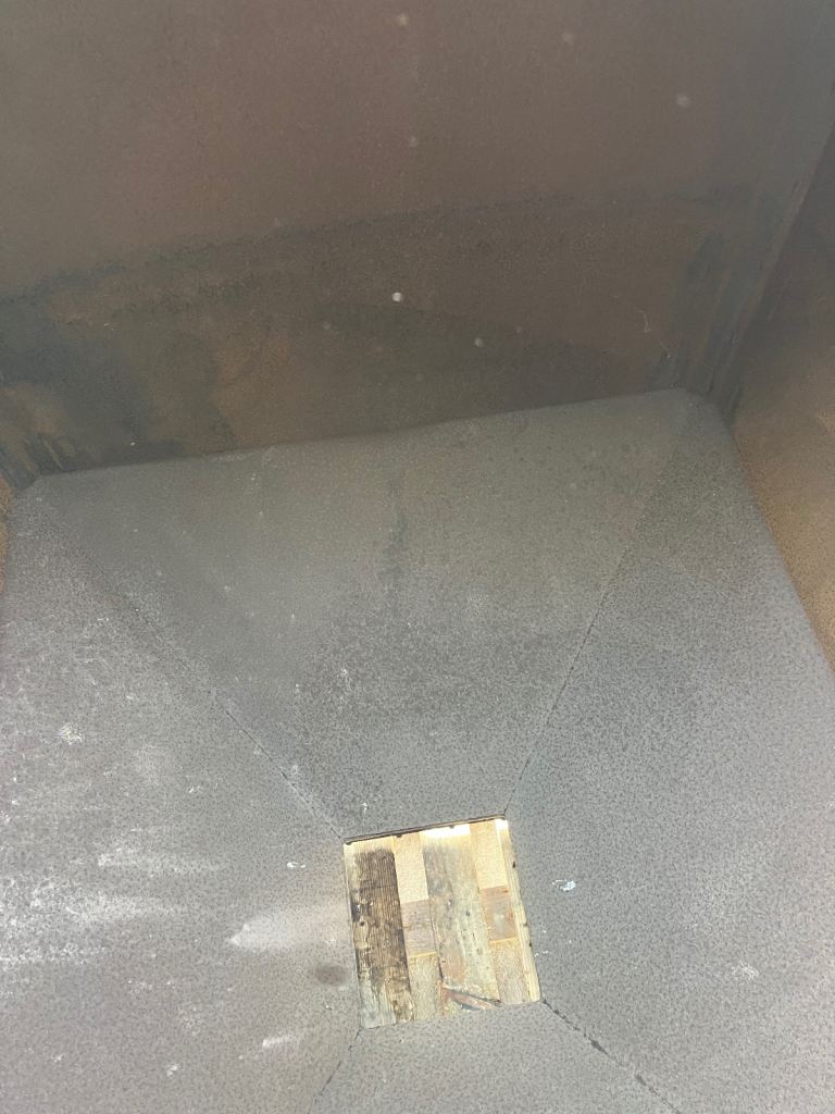 Steel IBC Hopper for powders, sand, gravel. With large bottom manual slide valve for emptying, ( 12”x12” )