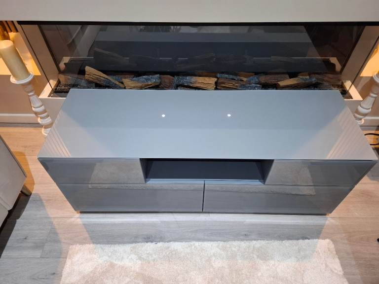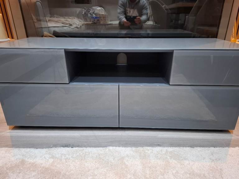 Tv unit from next excellent condition 2 drawers and 2 storage units glass topped sides and front.solid not wall mountable cost 550 pounds