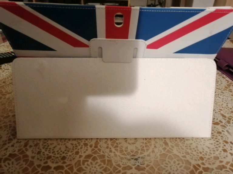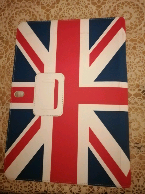 Union Jack Tablet Cover 30x20 Cms. This was opened but never used. Just been stored in the cupboard. It has some marks, not very noticeable.