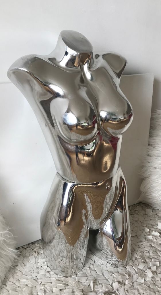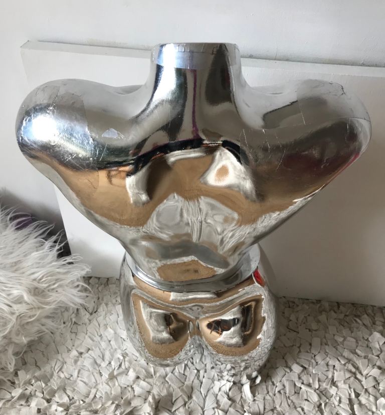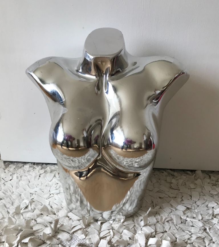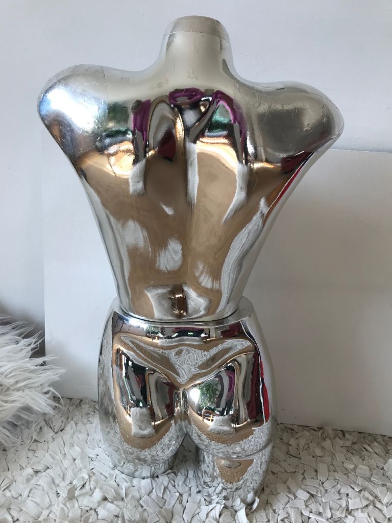 Unusual chrome colour retro mannequin, 80’s sculptural vibe; display in vintage shop, tattoo shop?