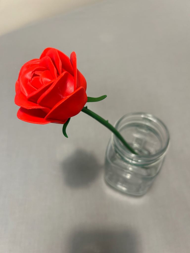 A modern twist on a timeless symbol of love. This single red rose is beautifully 3D printed with fine detail, capturing the elegance of a real rose while lasting forever. No wilting, no fuss—just a bold, meaningful gesture that can be kept and displayed year-round.