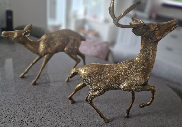 Vintage Brass Deer and Doe - Large heavy ornaments