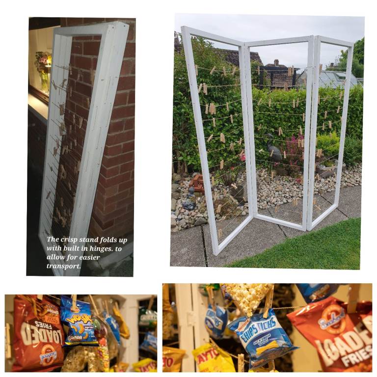 Handmade ladder with removable legs (to hold memories and photo frames).