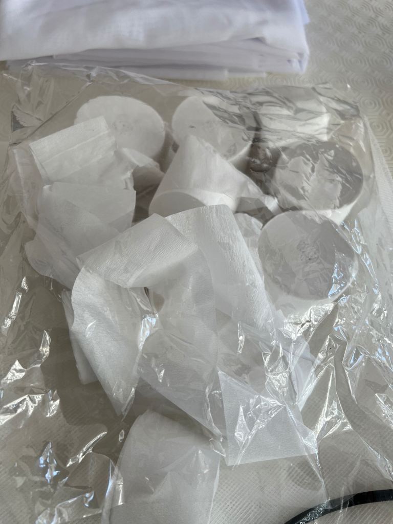 11 white streamers (2” wide)