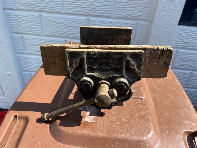 Woden Vintage Carpenters Vice It all works But needs a good clean up Comes with original fixing bolts & nuts
