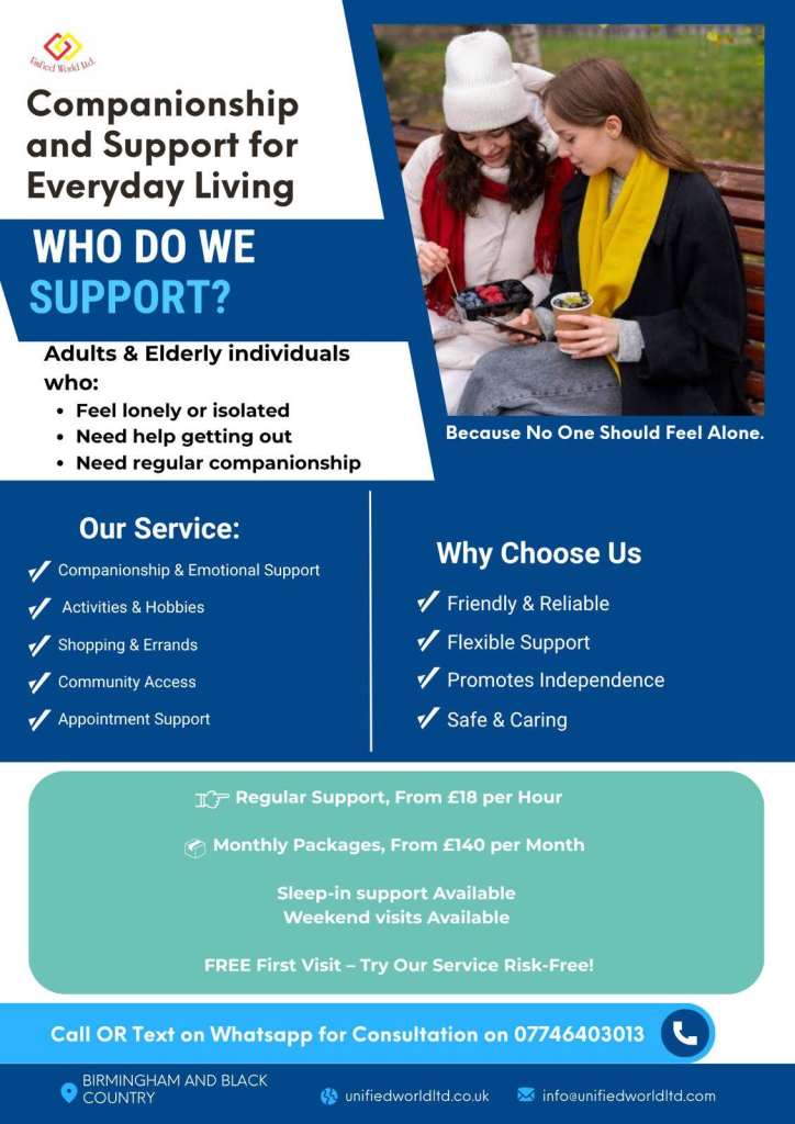 Posting for under a monthCompanionship and Support For Adults and Elderly Living Alone