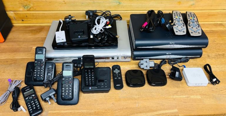 Here I have a Job Lot of Home Phones / Sky & Now Tv Box’s DVD Recorder / Player ECT.