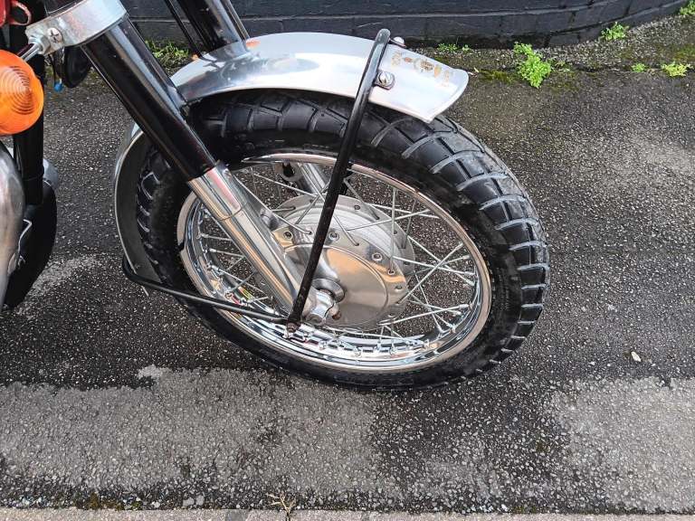 THIS BIKE IS IN VERY USABLE CONDITION. IT HAS HAD ALOT OF MONEY SPENT ON IT, 12 VOLT ELECTRICS,ELECTRONIC IGNITION,INDICATORS , NEW BATTERY,TYRES , RIMS ,CLUTCH,AMAL CARB,HANDLEBARS,ENGINE REBUILD,CRANK, GASETS AND SEALS,NEW SPEEDO. COMES LOADS OF BILLS,. FOR MORE DETAILS PLEASE CALL [Phone number removed].P/EX AND DELIVERY POSSIBLE.
