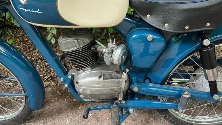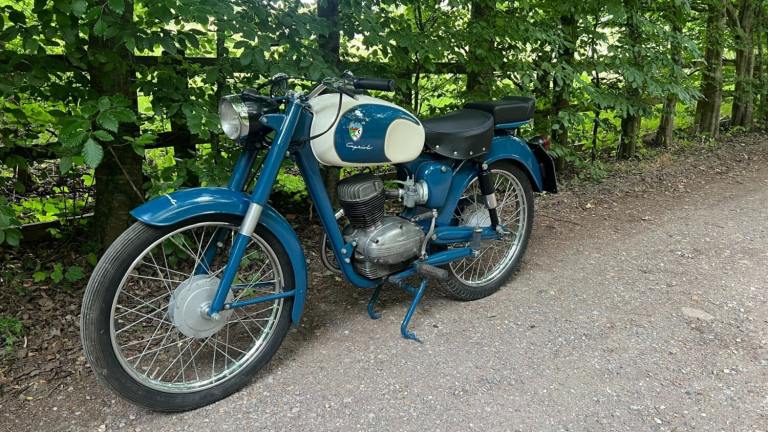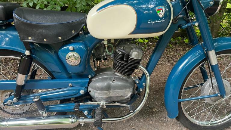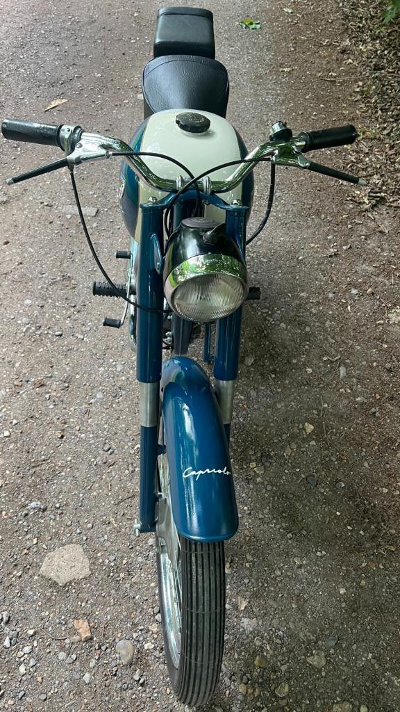 Automere Caproni Capriolo 75 Turismo this beautiful little italian Gem has been part of a private collection in italy and bought into the uk and registered by ourselves. it has had a restoration at some point in its lifetime but has some paint in perfections and marks (picured) which would need to be corrected to make it perfect. other than that i can not fault it. fresh caswell tank liner and a check over with oil changed has been completed by our workshop, ready to take the new custodian on a ride back in time. Comes with a V5 document and is MOT and tax exempt. We do offer a doorstep delivery service should you need it, we will need your postcode to quote you. Any Questions Please call Matt on [Phone number removed] or Henry on 07590964198A bit on Caproni, Named after the roe deer, the Capriolo marque emerged in 1948 from the ashes of the giant Caproni group, formerly one of Italys largest manufacturing concerns. Caproni had been founded in the first decade of the 20th Century as an aircraft manufacturer, and only turned to motorcycle production after WW2. The firm commenced with a 50cc ultra-lightweight before swiftly moving on to a 75cc model, the Capriolo 75, which was notable for its use of a pressed style frame and an unusual four stroke engine of the overhead face cam type, which also featured a longitudinal (rather than transverse) crankshaft. Sports versions won their class in the 1954 Milan-Taranto and 1955 Giro Motociclistico d Italia. When engineer Giovanni Caproni died in 1957, the company was reorganised and adopted the Aeromere name, a shortened form of Aero Meccanica Regionale. Its motorcycles continued to be badged as Capriolo until production ceased in 1963.