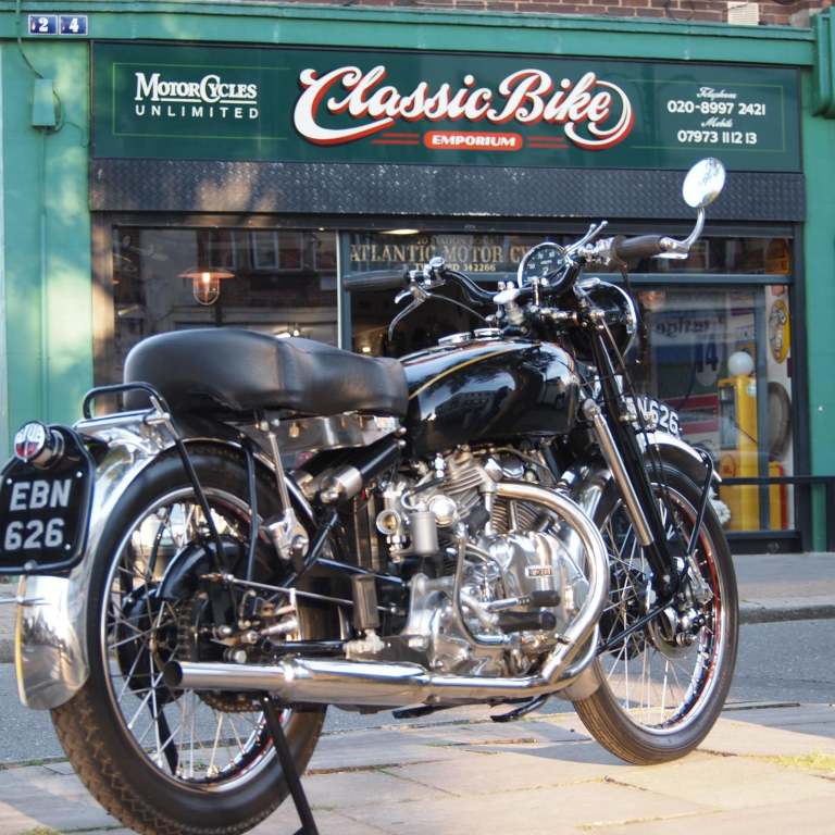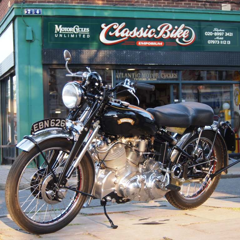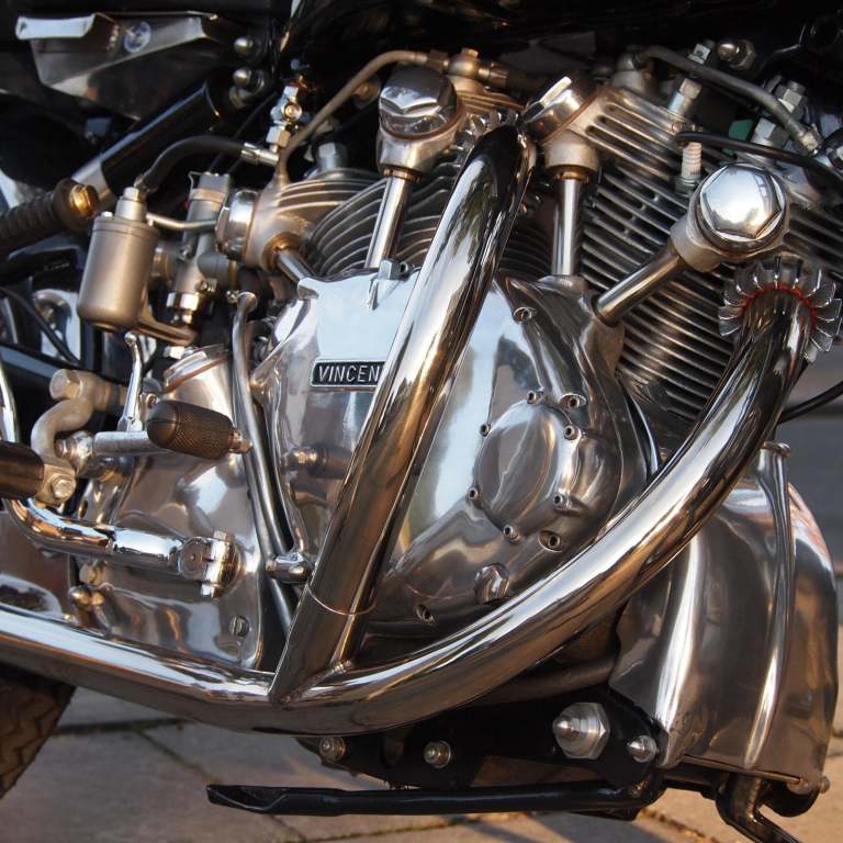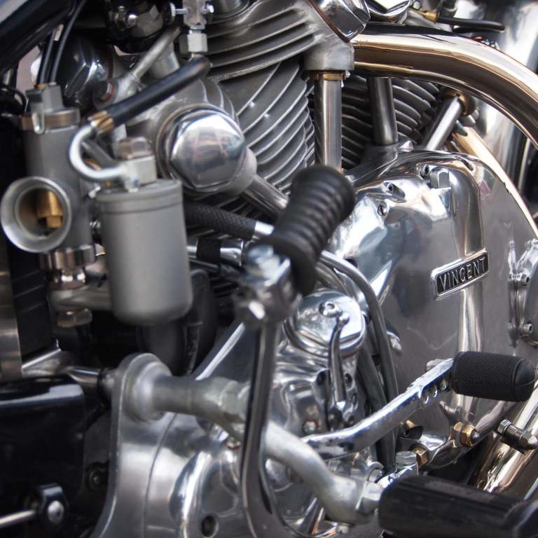 The Vincent story began with Phil Vincents purchase of the HRD name in 1928, initially producing bikes using proprietary engines in his own chassis. Always the innovator by the mid-30s he had developed his own 500cc single and 1000cc twin-cylinder designs that survived until the companies closure in 1955. The big vee twin was the fastest motorcycle in the world at the time and with some astute marketing become the bike everyone aspired to own. The Rapide and Black Shadow range have become some of the most desirable and iconic bikes of the era.