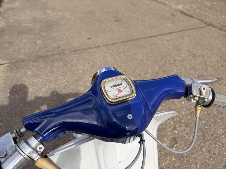 The scooter qualifies for historic road tax and benefits from being ULEZ exempt. As a classic it is eligible for low-cost classic insurance and is supplied with 3 months major mechanical warranty. All of our vehicles are sold clear of finance or insurance damage with a certificate provided at handover. We recommend using premium unleaded fuel (E5) in all of our classic vehicles.