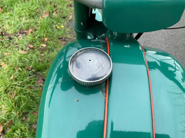 While a lot of money was spent on the restoration some years ago, the paint on the petrol tank has started to flake, though the rest of the bike remains in a tidy presentable condition.