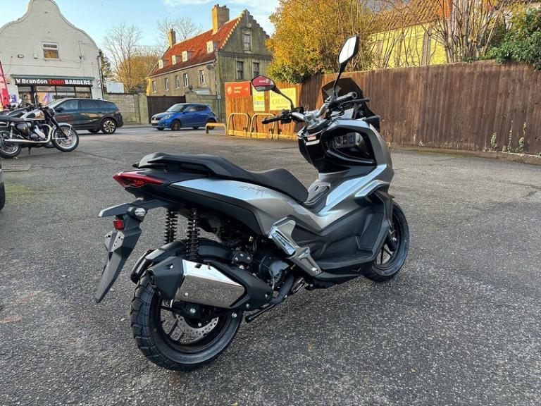 .Brand New AJS ADV-s 125 in Silver. If you’re a rider seeking a joyful, uncomplicated adventure, then look no further than the ADV-S. Enjoy the ease of the automatic gearbox while you ride with confidence on this well-planted, yet light weight 125cc scooter. The ADV-S is more than just a mode of transportation, it makes a statement and ignites a sense of pride wherever your destination may be. The ADV-S 125 is light and nimble, inspiring confidence with every twist of the throttle. Prepare for an exhilarating ride like no other. £3049 on the Road
