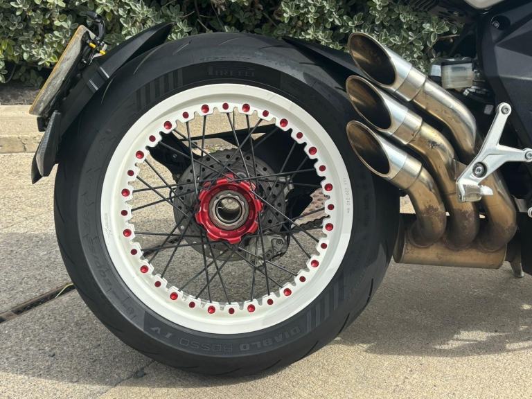 With a full power 140 BHP 3 cylinder motor and a shade over 170 kilos, these bikes are little weapons! With an aggressive stance and Kineo wire wheels, they absolutely look the part too. Eccentric adjusters on the bars mean you can adjust riding position and the seat is also very comfy. Electronic aids are top of the range for the time, with ABS, traction control, various power modes and a quick-shifter up/down. Top spec Brembo brakes with Marzocchi/Each suspension give more than enough feedback for when you want to push on
