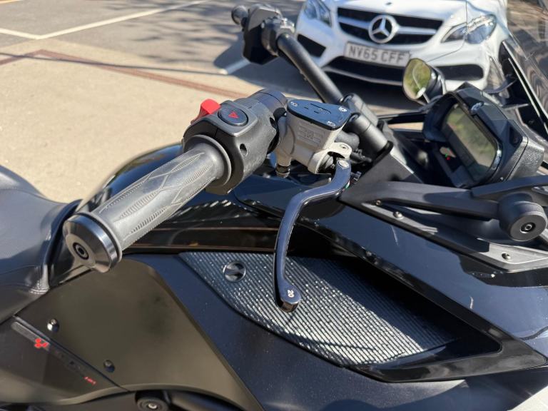 2020 Can-Am Spyder F3s 1330cc 6 speed semi automatic trike in black , rider and passenger backrests, footboards , heated grips and blue ridge screen and the Hand brake adaption