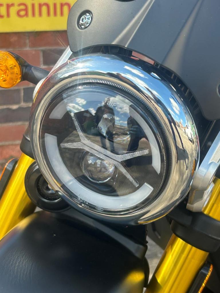 The X-Bongo is immediately noticeable for its style, both retro and decidedly modern, highlighted by a livery that recalls the golden age of motorsport. This gives the X-Bongo a bold and contemporary character. Nevertheless, the X-Bongo retains some iconic features of classic motorcycles, such as its round LED lights, which add a vintage touch while ensuring excellent visibility.