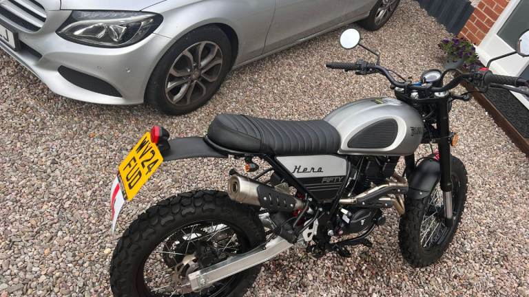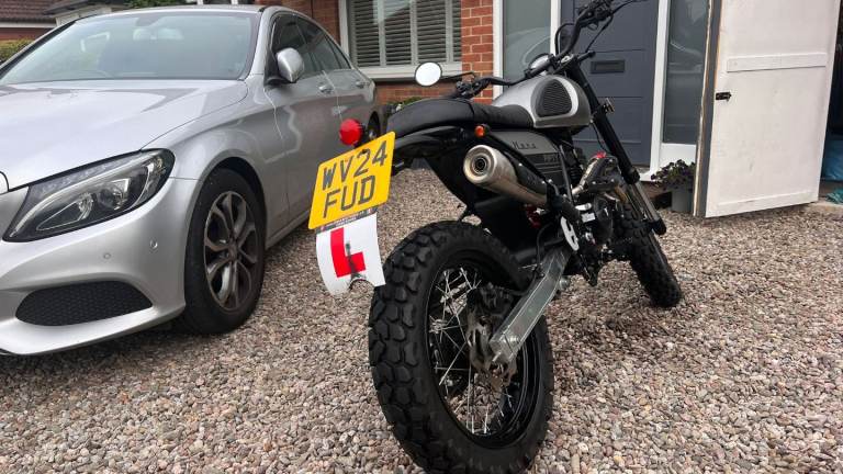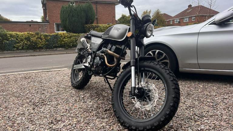 Geared 50cc retro style scrambler. Absolutely lovely bike. My son is now moving on to a 125 so up for sale, 24 plate and had it for about 18 months. Has been serviced recently. He does use it everyday to and from college and work, so miles will go up.