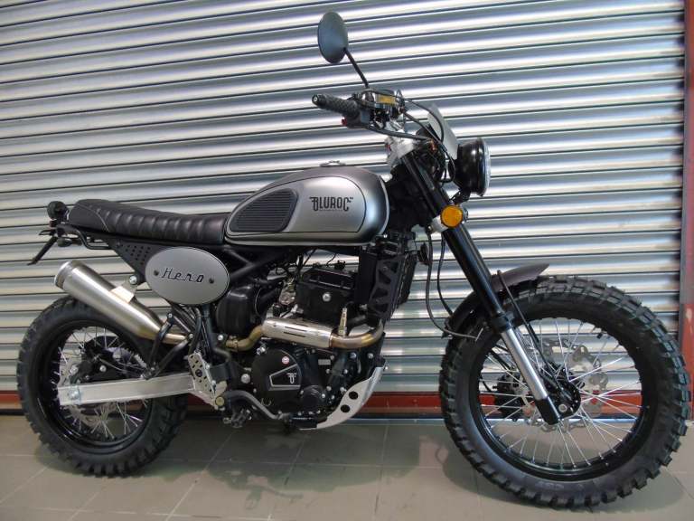 Bullit Bluroc Motorcycles Hero 250cc ABS Brand New 2025, The new addition to the very popular Hero range, Comes with great spec including a punchy 6 speed single 250cc liquid cooled twin cam motor, ABS, Upside down forks, Fastec rear suspension, Adjustable levers, 15 Litre tank, 2 Year warranty, Available in Titanium Grey / Black & Gold / Desert Trophy. All major cards accepted, 2 Year warranty, Part exchange considered, Full UK Delivery. Save £500 Reduced Was £3995 Now Only £3495
