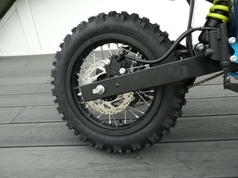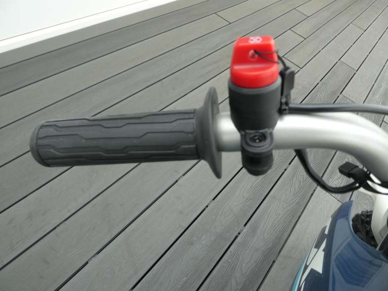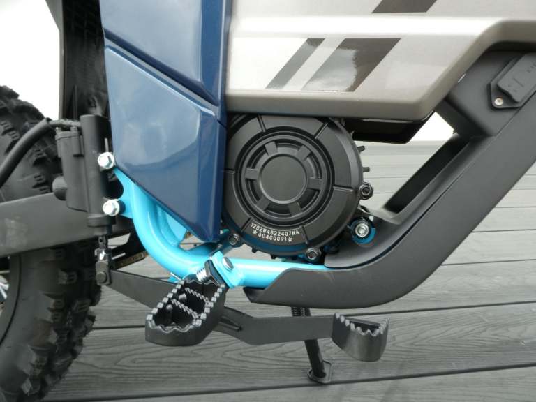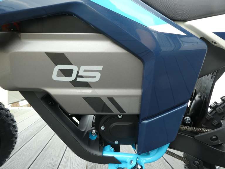 CF Moto CX-5e takes everything good about the CX-2E and ramps it up for competent young riders. More power, more ground clearance, longer suspension,14 inch front and 12 inch rear wheels and off road tyres. It is a full fledged youth dirt bike. The fact that the battery can be easily replaced during riding sessions will make both the rider and their parents very happy. Long range lithium battery. You can ride at full speed for about an hour. Replacing the battery is simple and requires just a few screws. Maximum speed can be maintained for an hour. Swappable battery, remove the quick release screw to reveal battery, easy to replace, no tools needed.