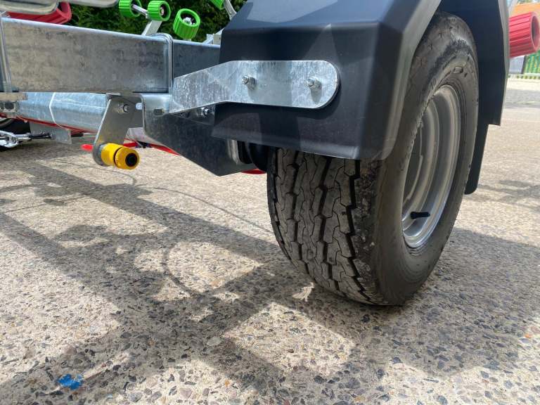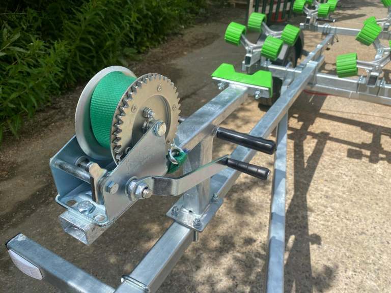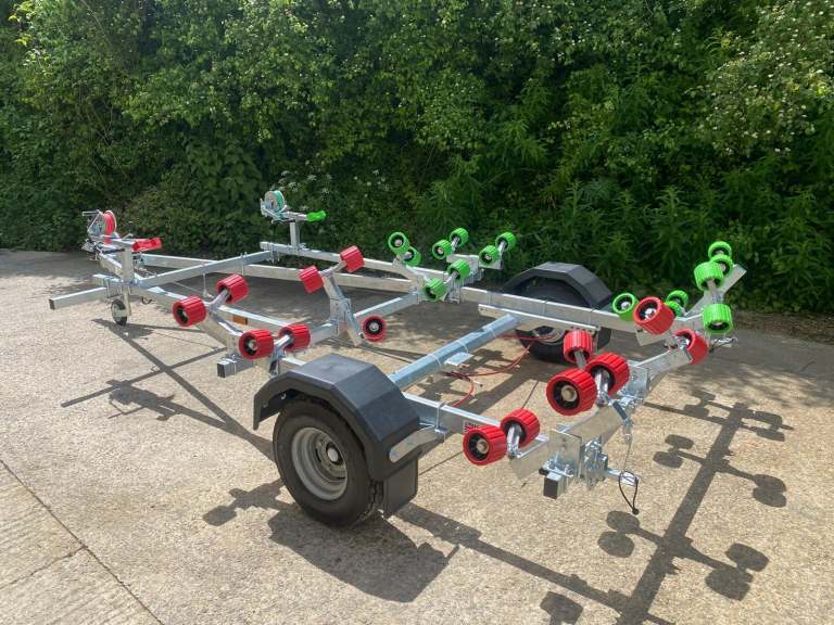 Everything on this trailer is adjustable, so it can fit most hull shapes.