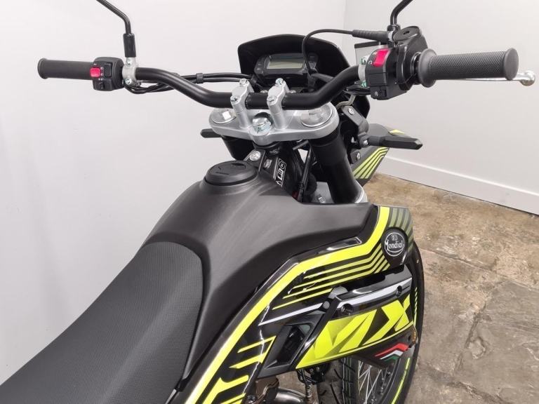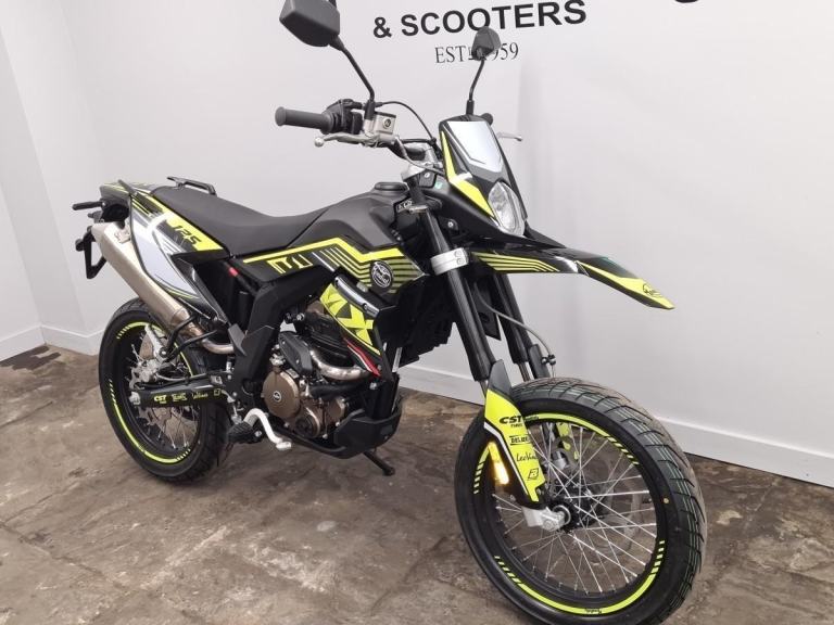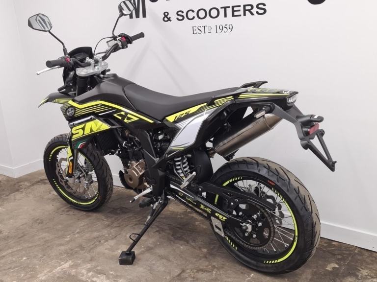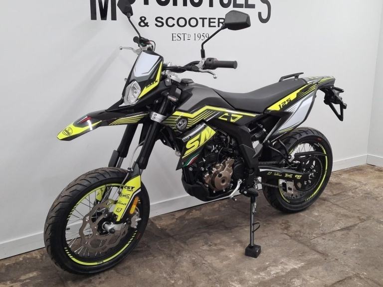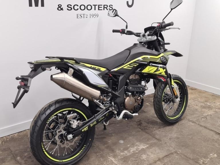 Are you looking for an off-road bike that's easy to use on the road? SMX 125 Motard is the answer. The SMX 125 Motard fits the gap between Road & Trail seamlessly, with sporty road tyres it grips the tarmac well making it ideal for a bit of urban exploration but still capable of going down a green lane or some mild off-road action. The Motard 125 is the perfect mix of advanced suspension, technology and a specifically tuned engine, the bike that enables you to enjoy the mud & the tarmac. All vehicles are HPI checked and will receive a full pre-delivery inspection for your complete peace of mind and manufacturer's warranty. We offer low rate finance options, UK Nationwide Delivery, part exchange welcome.