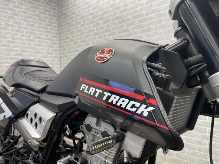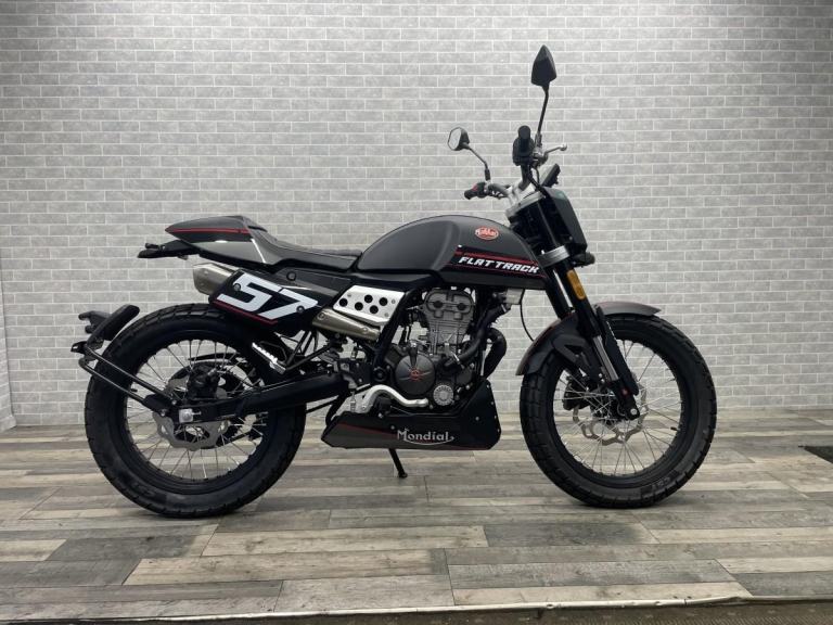 Big Saving up to £500 On Your New Mondial Flat Track 125. The FB Mondial Flat Track 125 is a sensational piece of design and ONLY available in 125cc. Standing out from the crowd has never been easier and with low rate monthly payments, it doesn't break the bank. Dirt, mud, slick tires… In a world where its hard to stand out, you find a part of inhabitants more instinctive and primitive. Youngsters who feel a call from the earth without being able to fight it and decide to run into it riding a unique motorbike … a FLAT TRACK! The bike will go through a full Pre Delivery inspection by one of our trained technicians. WhatsApp us on [Phone number removed] or call now on 01744 616161. Reserve or Buy online at [Website URL removed] reserve for £99. We can deliver to your door or click and collect here in store. Part Exchange Welcome. Finance Available. Nationwide delivery. Buy with confidence from Millenium Motorcycles:- North West’s leading, multi-franchise dealership with over 500 bikes in store.