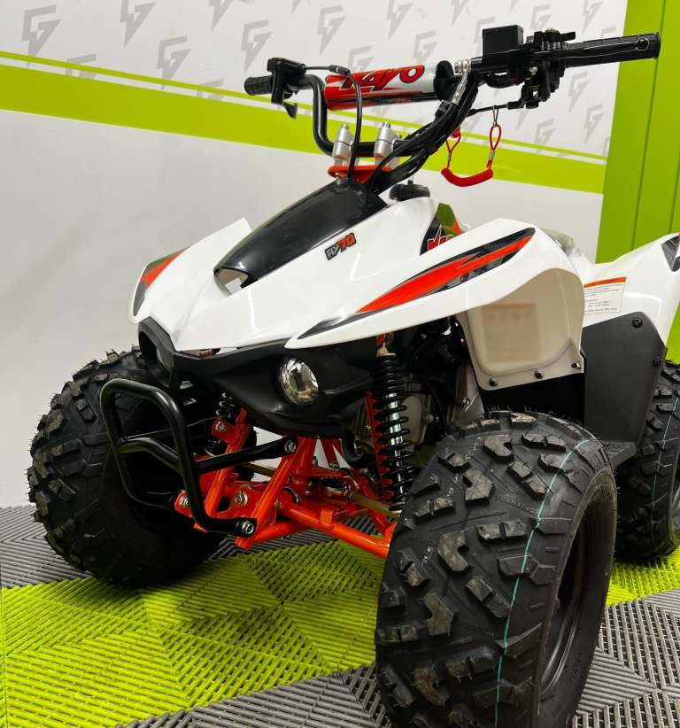 The AY70-2 is our smallest ATV aimed at children (supervised) from 6 years and upwards. The AY70-2 features electric start and is fully automatic with adjustable throttle restrictor & safety cut-out lanyard.
