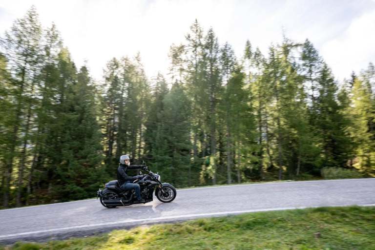 At the heart of this cruiser sits a mighty 997cc 4-stoke V-twin engine with cylinders positioned at 80°. The open chassis shows off the powerful motor that’s capable of a maximum speed of 198 km/h and puts out 70kW at 7600 rpm. The liquid-cooled system and 6-speed transmission deliver pace via a belt drive for a dependable and low-maintenance ride. The Bosch electronic fuel injection system ensures precise performance every time. The full-color 5” TFT digital dashboard brings new technology to an old-school- inspired build so you can easily see all your ride metrics at once.