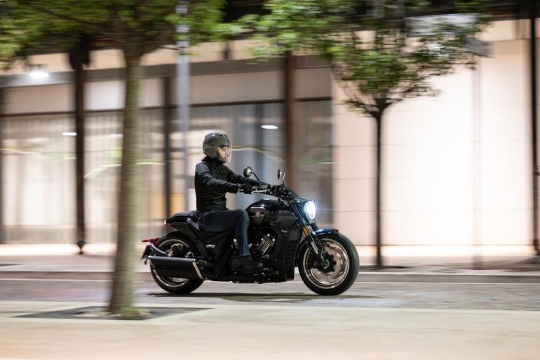 At the heart of this cruiser sits a mighty 997cc 4-stoke V-twin engine with cylinders positioned at 80°. The open chassis shows off the powerful motor that’s capable of a maximum speed of 198 km/h and puts out 70kW at 7600 rpm. The liquid-cooled system and 6-speed transmission deliver pace via a belt drive for a dependable and low-maintenance ride. The Bosch electronic fuel injection system ensures precise performance every time. The full-color 5” TFT digital dashboard brings new technology to an old-school- inspired build so you can easily see all your ride metrics at once.