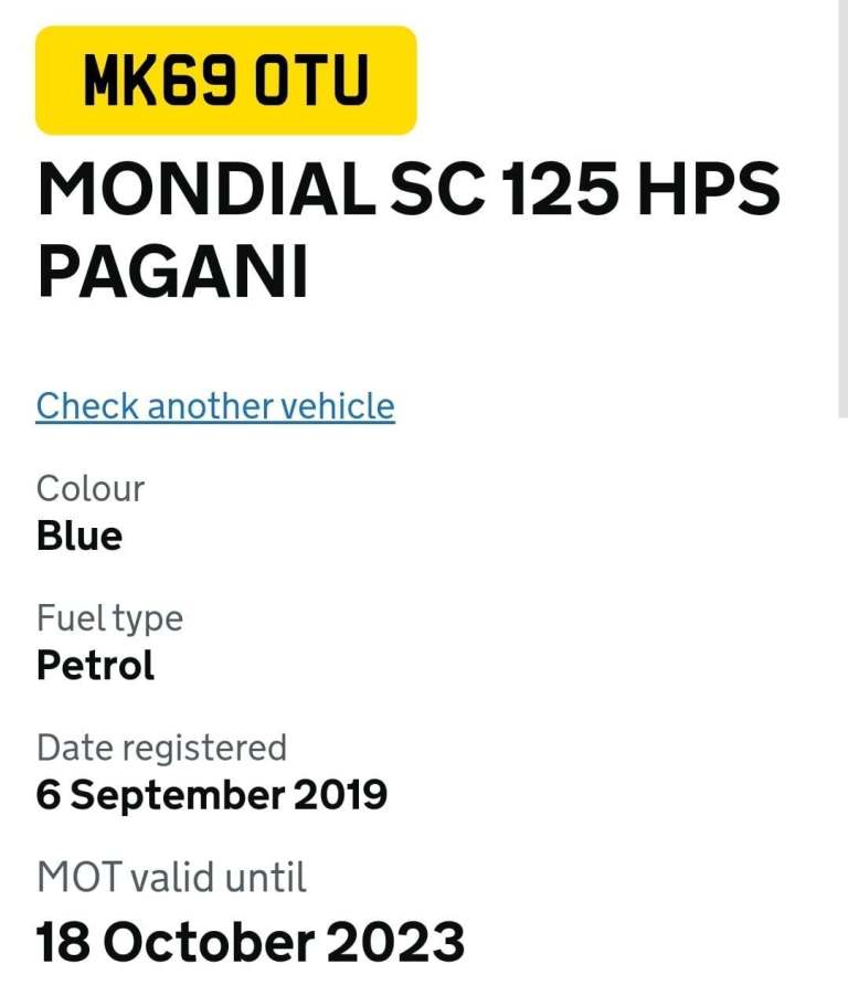 Posting for 2+ yearsMondial SC 125 HPS PAGANI