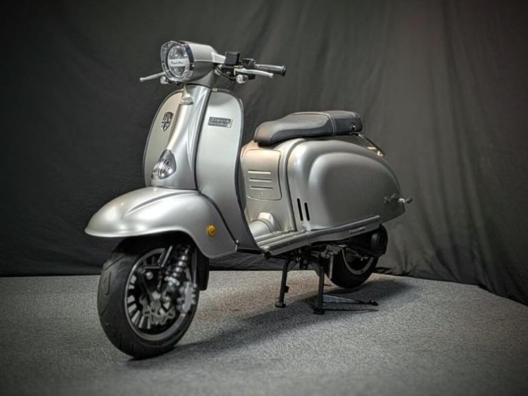 The E4 offers a 70 km/h top speed and the equivalent performance of a 125cc petrol scooter. The intelligent battery is equipped with a BMS that protects it from overcharging and excessive discharging, while also regulating power consumption for maximum range. The Italian-designed scooter features a state-of-the-art full colour TFT dashboard, USB phone charger, full LED lighting and a comfortable none slip dual seat with an 18.9L under seat storage compartment for maximum convenience.