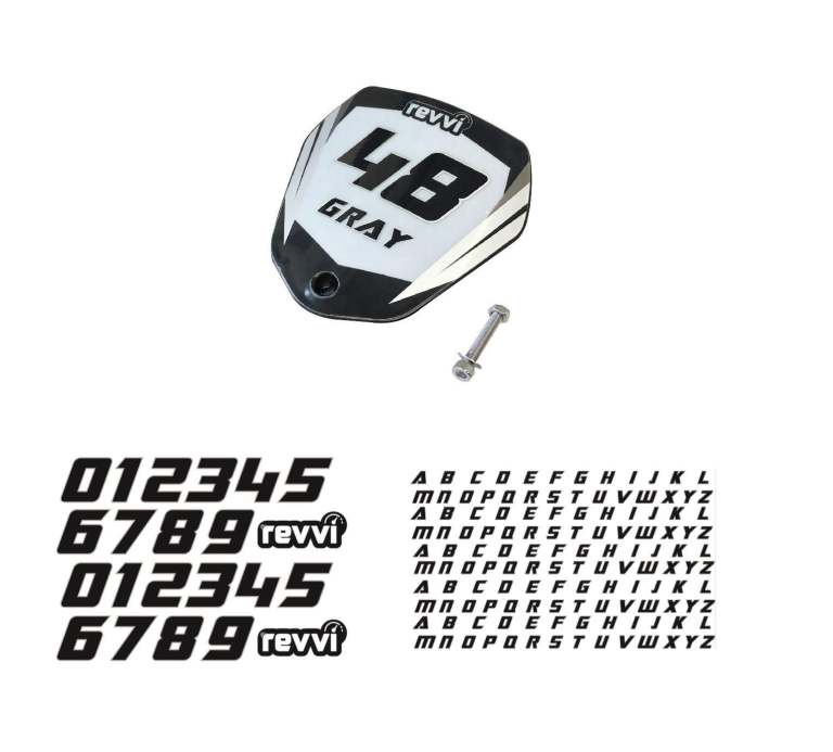 Included with every bike so you can customize your Revvi bike with race number and rider name.