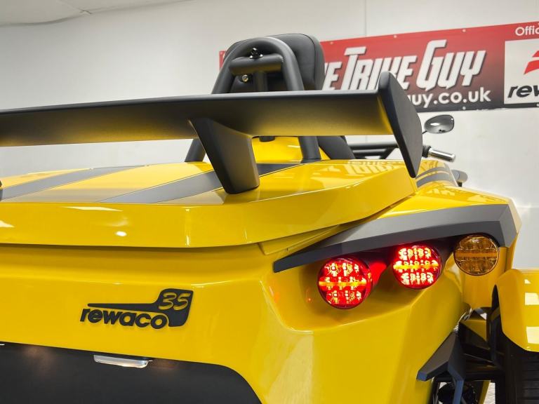 New Rewaco Trike PUR3 GT Turbo Blackline 35th Anniversary Edition Finished in Solar Yellow Pearl & Matt Black Special Paint, Top of The Range Specification Throughout Including New & Upgraded Technology with Apple car play & Android Auto Functions, New Nexus Wheels & Full Edition 35 Styling Pack Complete with Comfort Chassis & High Performance Turbo Charged 140BHP 7 Speed Automatic Powertrain.